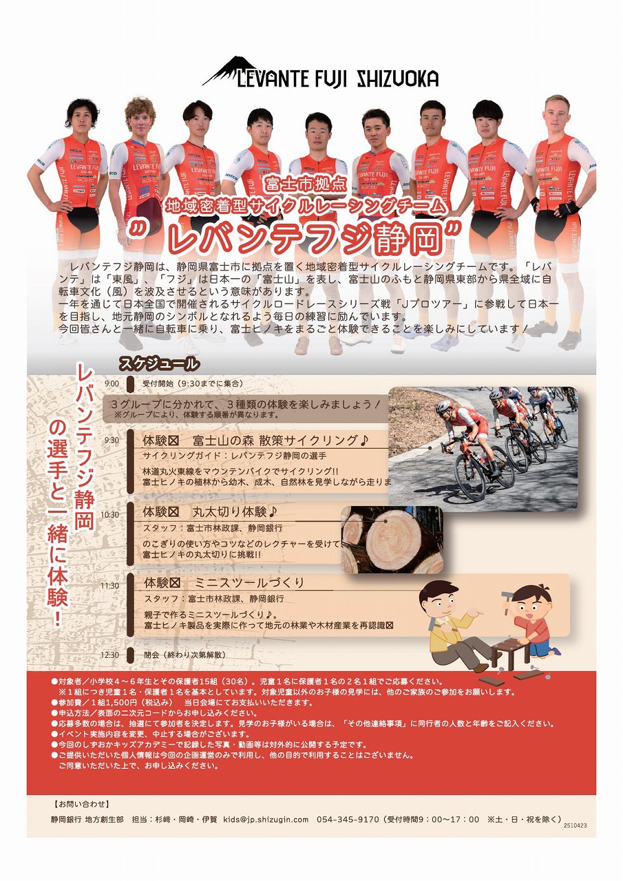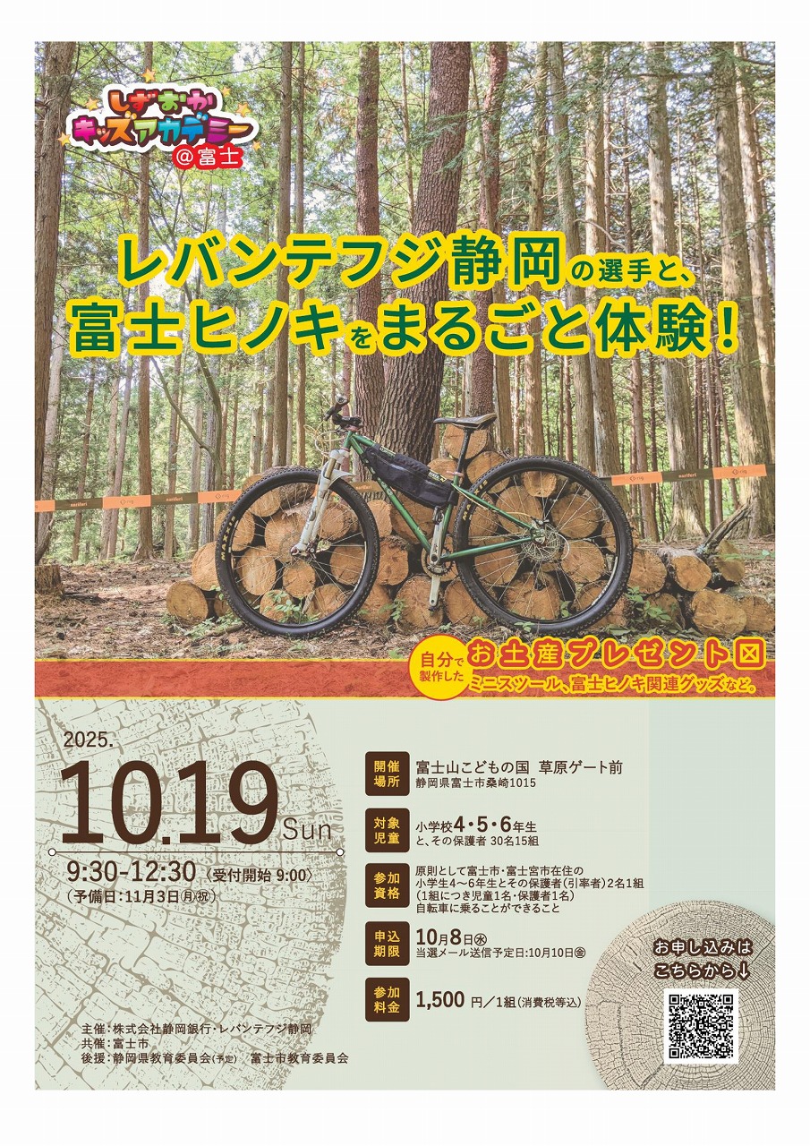 ・富士市・富士宮市在住の小学校4~6年生とその保護者15組(30名)。児童1名に保護者1名の2名1組でご応募ください。