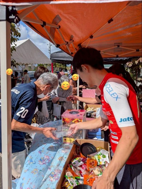 サルマ選手は自らお子様向けの持ち場がいいと、輪投げ、射的コーナーのサポートを、山口選手はお菓子救い、飴の掴み取りコーナーのお姉さまに声をかけていただきサポートすることに!公認ファンバサダーの川上さんはフランクフルト屋さんを担当し、それぞれの持ち場で楽しくお客様対応を行いました。中にはレバンテのことを知ってくださっており、頑張って!とお声がけしてくださる方も!