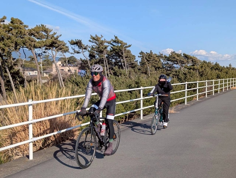 富士市サイクルステーションを出発し、NEOPASA駿河湾沼津へ、10%超えの登りもありましたが全員で到着。