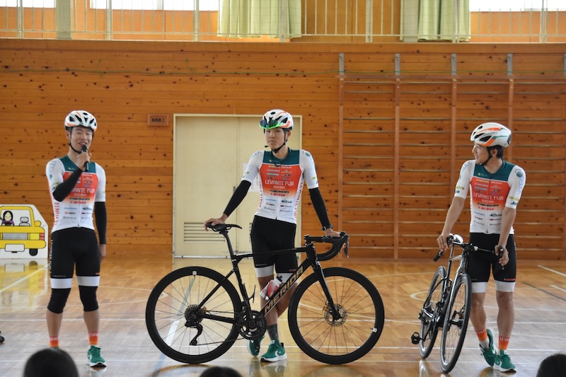 富士市立富士中央小学校にて自転車安全教室を行いました 2026.04.21 地域活動 富士市立富士中央小学校にて4年生を対象とした交通安全教室に参加しました。 交通安全指導員さんの指導のもと、富士中央小学校の生徒さん80名以上に向けて、交差点の一時停止、右左折について詳しく実演しました。 交差点をスコアボードで再現!しっかりと覗き込む山口選手。 初めての交通安全教室に緊張する森選手。 富士中央小学校のみなさん、お疲れ様でした! 安全に楽しく自転車を活用してください! BACKALL