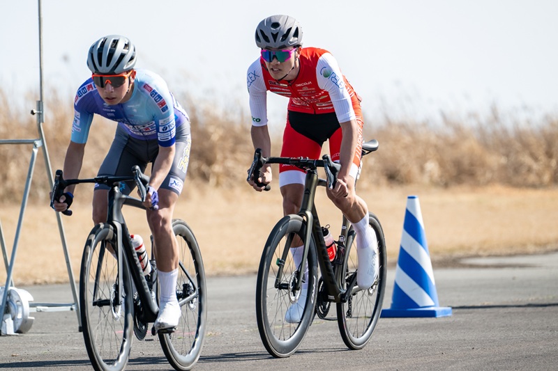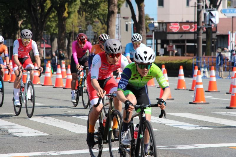 スプリンターを揃えるチームブリヂストンサイクリングと、総合力の高いシマノレーシングがコントロールするメイン集団に対し、足並みの揃っている先頭4名は快調に逃げ続け、20秒から40秒ほどの差で終始推移する。