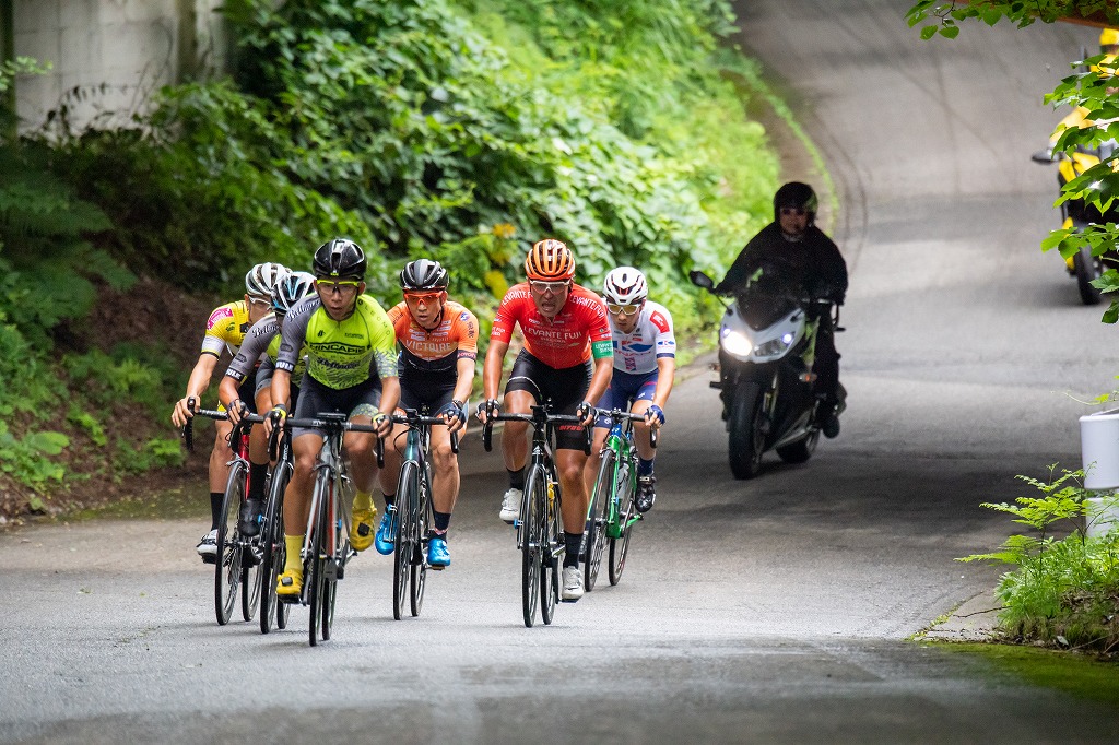 予想通り、レースは序盤から抜け出そうとする選手のアタックが頻発し、ハイスピードで進む。1ラップ9分台に落ちることなく、群馬のコースとしては、かなり速いスピードを終始維持するレースとなった。
