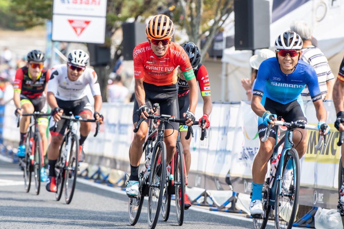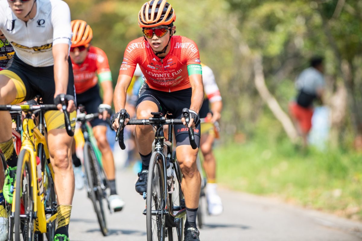 集団は長く伸び、後ろにゆくほど強度が上がる。序盤で30名程に絞られた集団には、レバンテフジ静岡から佐藤、西村の2選手が残る状況。