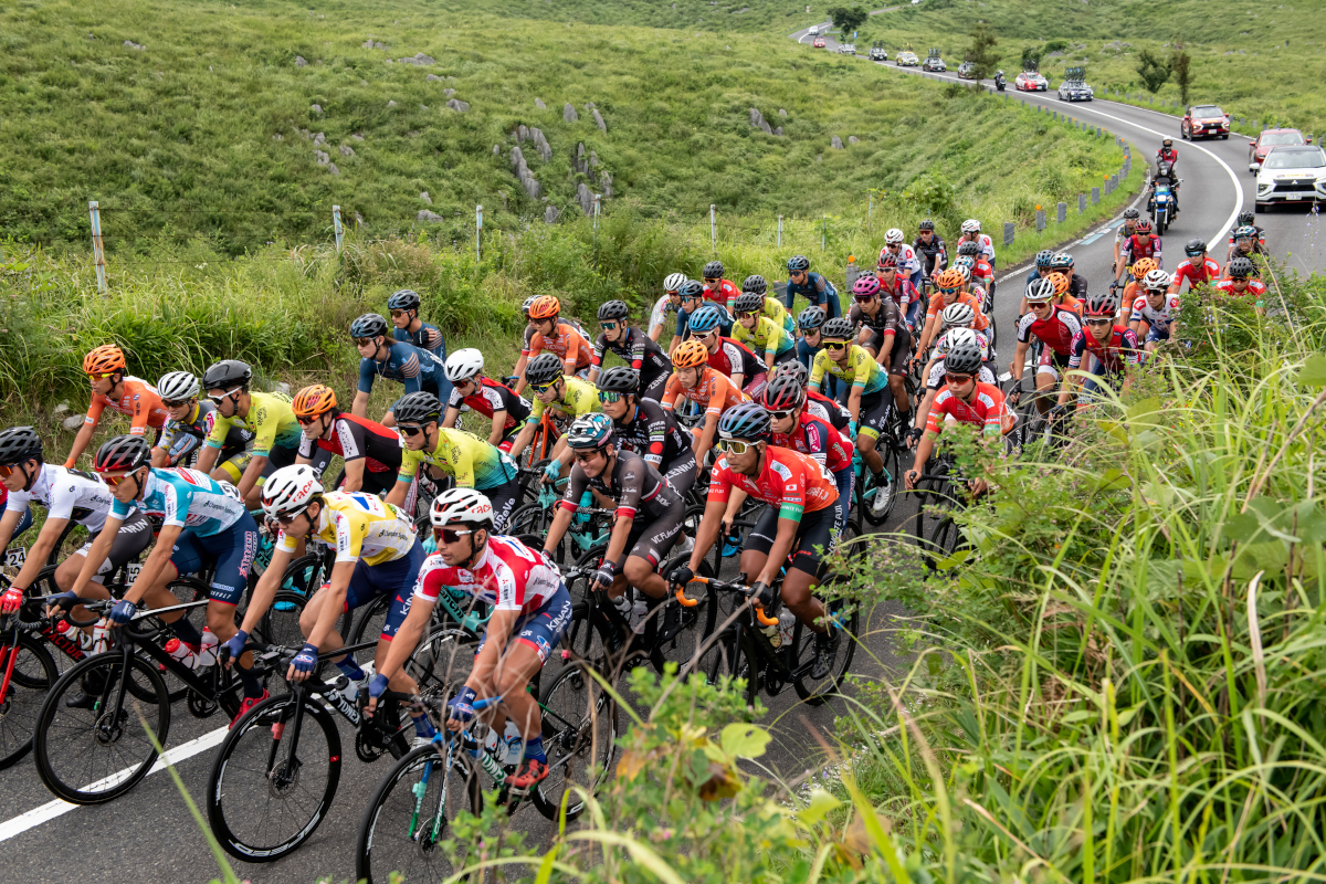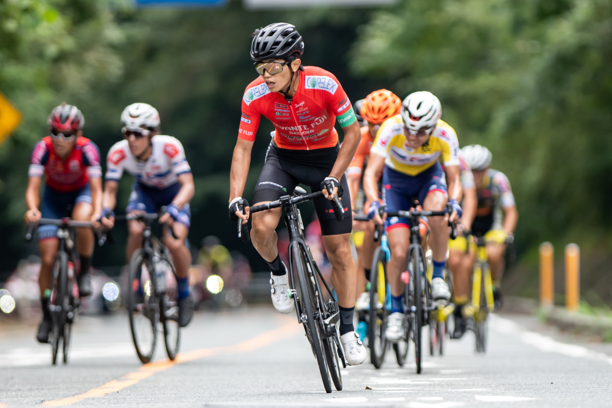 ゴールまで約10km、先行していた3名を吸収したトップ集団は、最後の勝負どころカルストベルクへ。残り500mほどで、那須ブラーゼン谷選手、スパークルおおいた宮崎選手、KINAN CYCLING TEAMの山本大喜選手によるデッドヒートになり、力強い登坂力を見せた山本大喜選手が優勝した。
